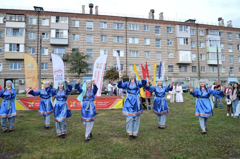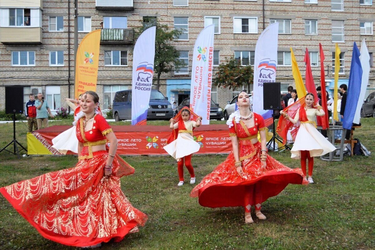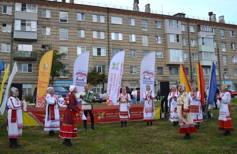 Накануне знаменательных дат во дворе дома №18 п. Новые Лапсары состоялся яркий праздник, организованный управой по Ленинскому району и Дворцом культуры «Акация». Мероприятие проходило в рамках проекта «Яркое лето Чувашии», инициированного Главой республики Олегом Николаевым.