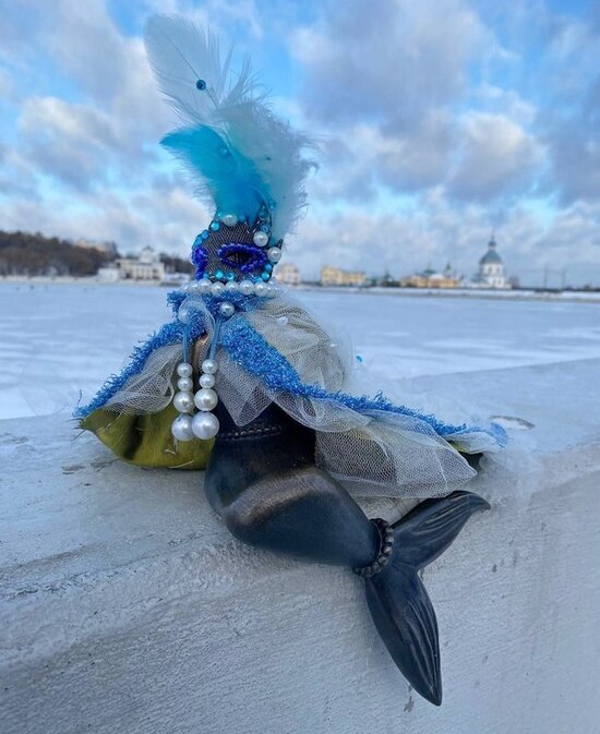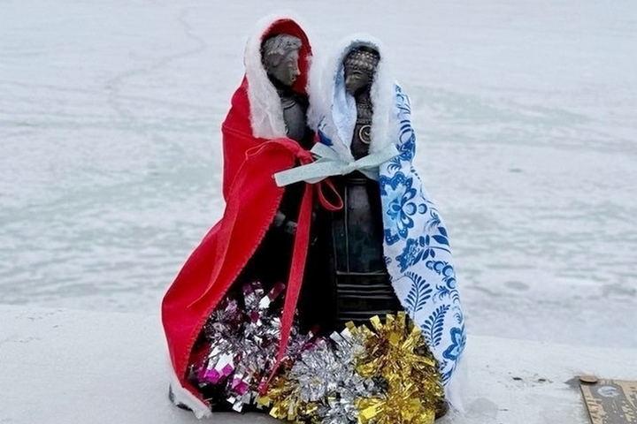 Преподаватели художественного отделения Детской школы искусств №1 под руководством Татьяны Алексеевой создали для фигурок сказочных персонажей, расположенных вокруг залива и на Московской набережной, необычные новогодние наряды.