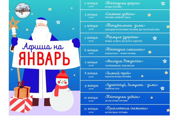 Каждый день со 2 по 11 января в 12:00 гостей приглашают на семейные развлечения и в настоящую сказку, наполненную радостью и волшебством. На главной площади парка вас будут ждать сказочные герои, тематические игры для всей семьи, а также весёлые эстафеты и конкурсы с ценными призами.