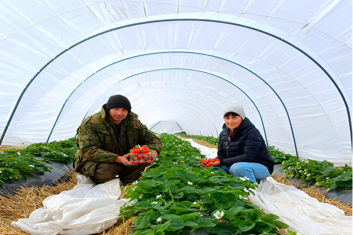 В селе Именево семья Александры и Евгения из обычной сельской семьи начала новое дело — тепличное хозяйство по выращиванию клубники. Всё началось с поддержки по соцконтракту: в мае супруги получили 200 тысяч рублей и направили средства на покупку инвентаря и саженцев.