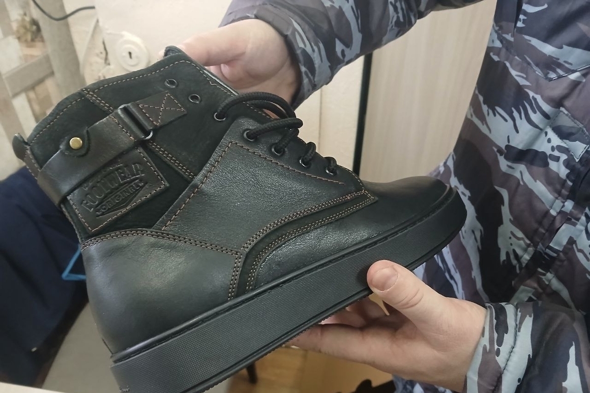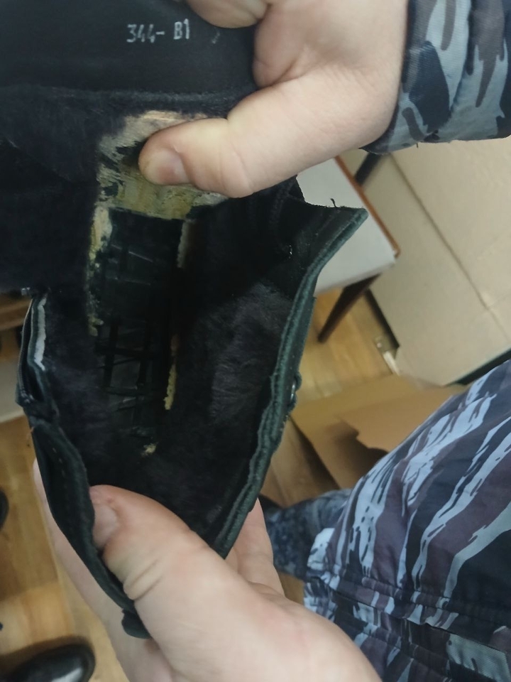 При досмотре одной из посылок сотрудники отдела безопасности и оперативного отдела обратили внимание на подозрительную подошву мужских ботинок, находившихся в коробке. Детальная проверка показала, что обувь использовалась в качестве тайника. Внутри были спрятаны два мобильных телефона без сим-карт и два зарядных устройства.
