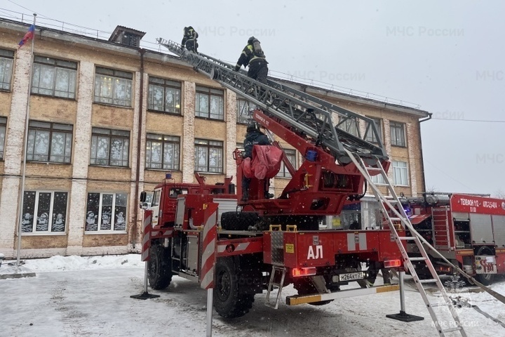 Спасатели, педагоги и учении отработали действия при условном пожаре в столовой на втором этаже.