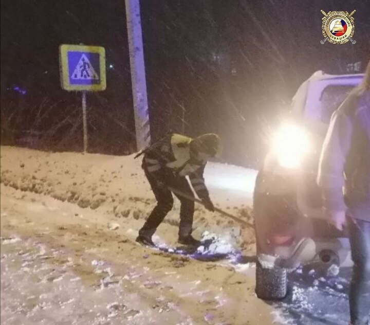 Инспекторы ДПС отделения Госавтоинспекции по Моргаушскому округу помогли супружеской паре, автомобиль которой застрял в снегу на автодороге «Авданкасы – Моргауши – Козьмодемьянск».