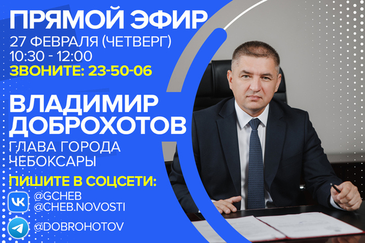 Вопросы можно задать заранее через Telegram-канал главы города, официальные страницы администрации в ВКонтакте или через информационный центр «Чебоксарские новости».