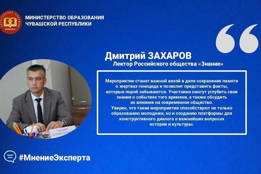 Среди спикеров — министр образования Чувашии Дмитрий Захаров, ветеран прокуратуры Ирина Иванова, ветеран Великой Отечественной войны Михаил Лавин и член Общественной палаты Виталий Емельянов. Они поделятся своим взглядом на сохранение исторической памяти, личными историями и опытом.