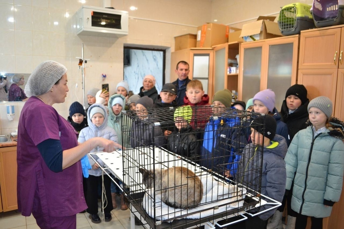 Ребята принесли в дар корм и угощения для собак, находящихся под опекой ветеринарной станции. Сотрудники учреждения рассказали школьникам о работе ветеринаров, показали, как ухаживают за животными, и познакомили с пушистыми постояльцами пункта.