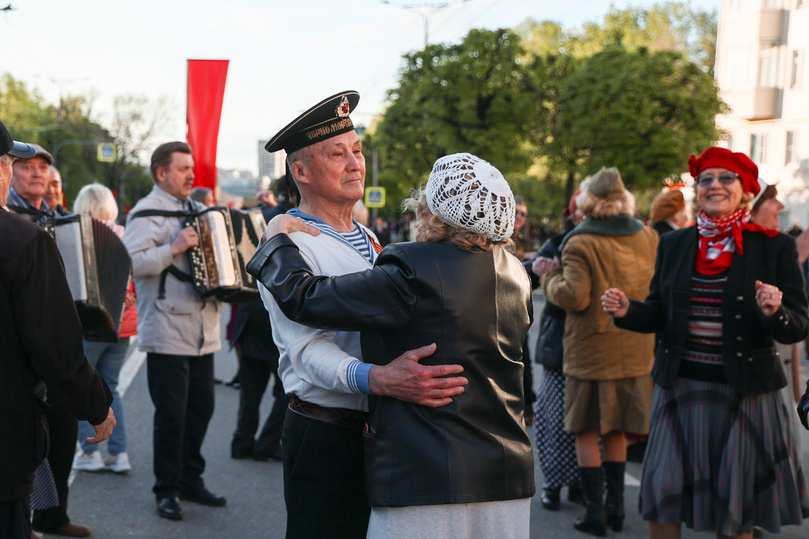 Особой атмосферой дышала Площадь Республики — здесь прошёл показ костюмов 40–50-х годов и большой танцевальный вечер. Олег Николаев и его супруга открыли вальс, за ними последовали десятки пар. Люди танцевали так, будто в стране только что закончилась война.