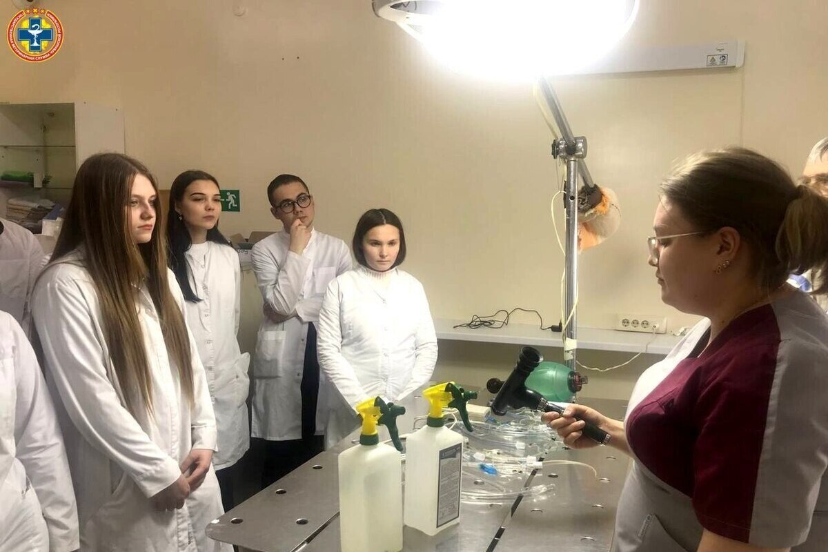 Начальник станции Сергей Сидоров провёл для ребят экскурсию по учреждению, рассказал о работе приёмного кабинета, современном оборудовании, лаборатории, рентген-отделении и операционной. Студенты наблюдали за проведением осмотров, диагностических процедур и хирургических операций.