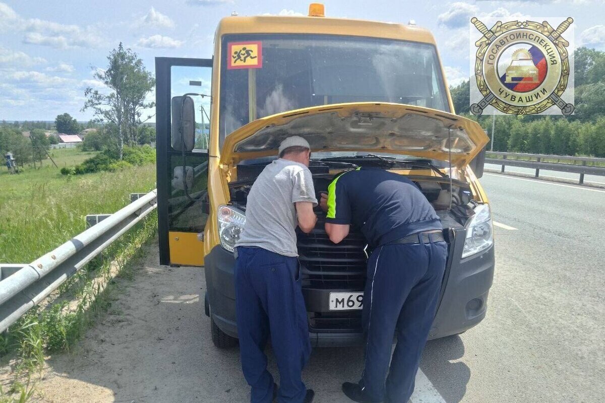 Сотрудники отдельного специализированного батальона ДПС ГИБДД по Чувашской Республике оказали помощь водителю школьного автобуса, следовавшего из Батыревского района в город Новочебоксарск. Во время движения на трассе у транспортного средства произошла поломка — вышли из строя ремень газораспределительного механизма и муфта.