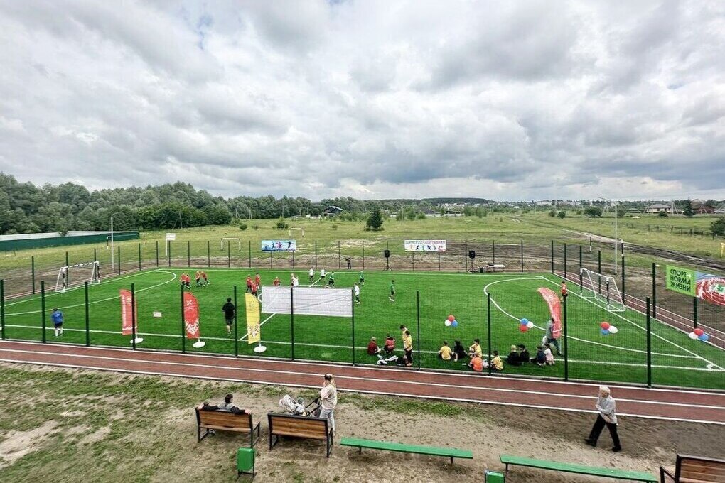 На обновлённой территории появилось современное футбольное поле с мягким покрытием, беговые дорожки и зоны отдыха с удобными скамейками. Это не только место для активного досуга, но и вклад в здоровье и сплочённость сельской общины.