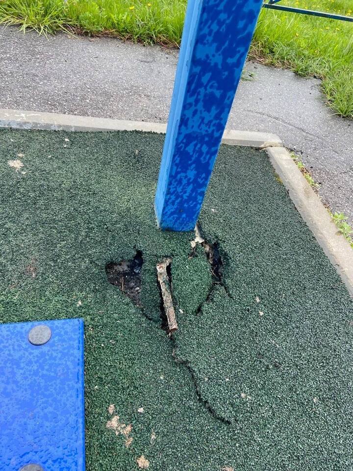 На некоторых объектах отсутствуют информационные стенды с правилами пользования и контактными данными, частично демонтированы элементы оборудования — нет спинки у скамеек, сиденья на качалке-балансире, отсутствует баскетбольное кольцо. Также зафиксированы повреждения ударопоглощающего покрытия.