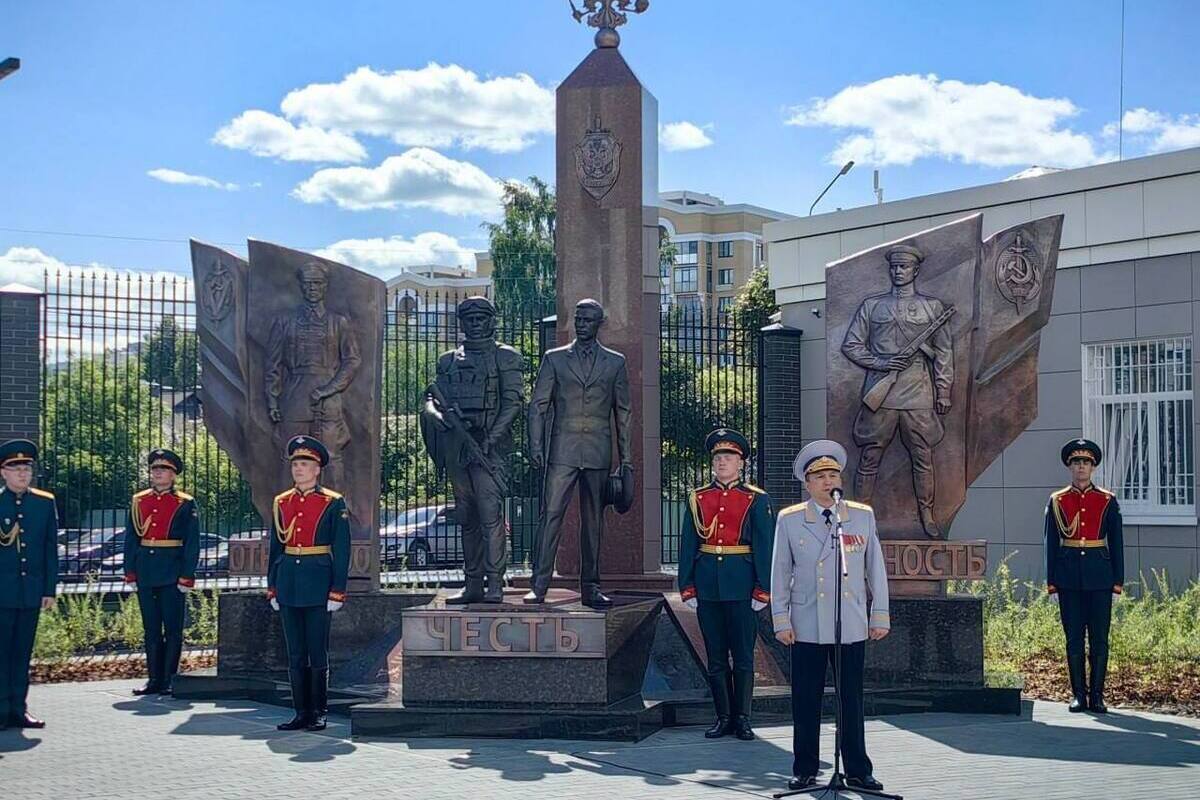 Центральным элементом композиции служит величественная гранитная стела. Её вершину украшают символы государственной власти — двуглавый орёл и герб Федеральной службы безопасности России. Девиз «Отечество, честь, верность» объединяет все элементы монумента, а на постаменте увековечены имена героев, отдавших жизни при исполнении служебного долга.