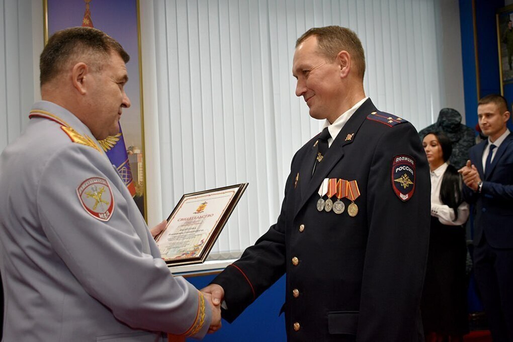 В Министерстве внутренних дел по Чувашской Республике прошла церемония вручения свидетельств о занесении фамилий сотрудников органов внутренних дел в Книгу Почёта. Торжественное мероприятие открыл министр внутренних дел генерал-майор полиции Сергей Кондрашов.
