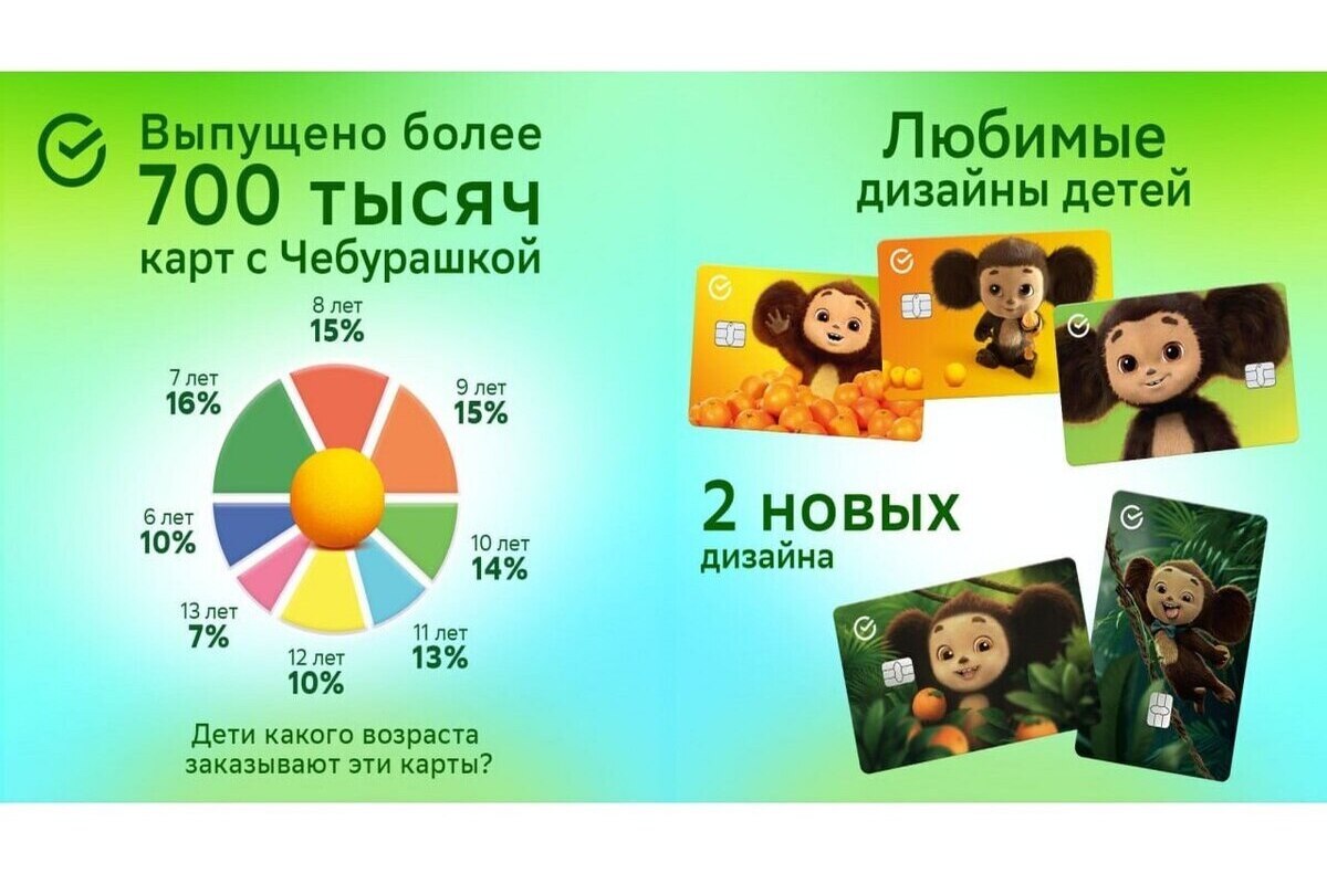 Новый выпуск детских СберКарт с Чебурашкой тоже ограничен. Заказать такую можно ребёнку 6–13 лет в приложении СберБанк Онлайн.