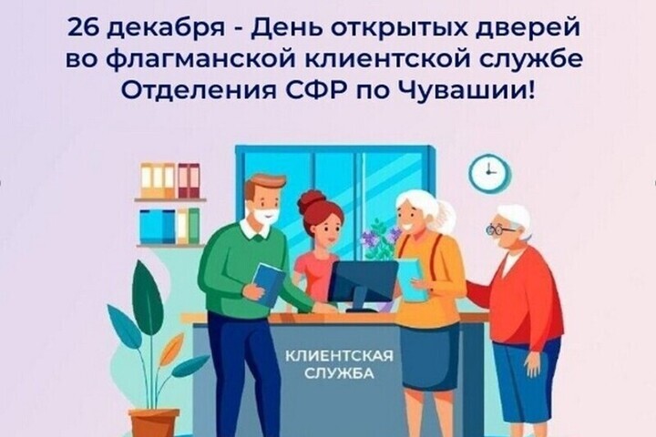26 декабря флагманская клиентская служба Отделения Социального фонда России по Чувашии проведет День открытых дверей. Мероприятие позволит жителям республики изнутри увидеть работу службы, узнать о новых электронных сервисах и задать вопросы специалистам.