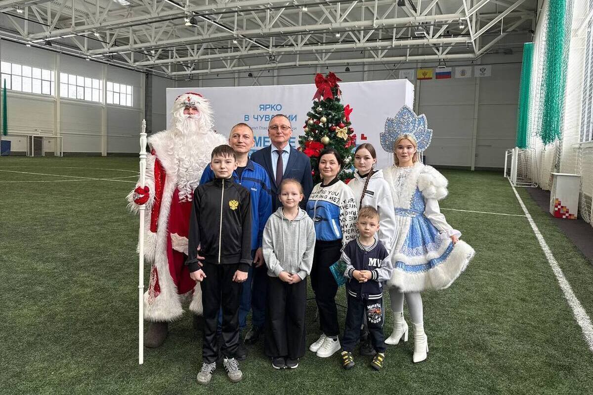 В рамках акции «Ёлка желаний» в футбольном манеже Чебоксар Василий Петров вручил подарки семье Медведевых.