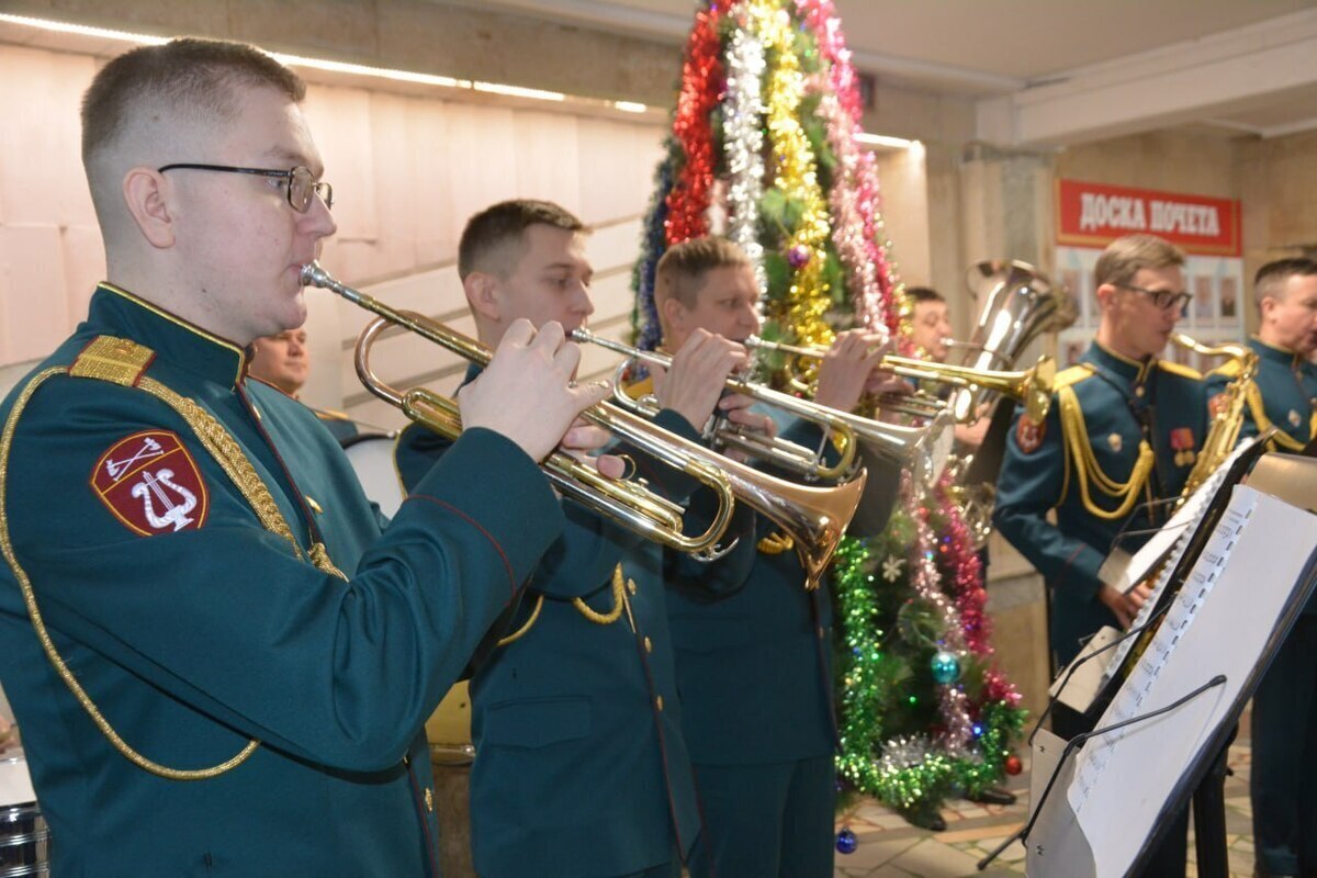 Музыканты специально приехали в Дом печати, где сконцентрированы редакции ведущих газет региона. Оркестр под управлением старшего прапорщика Вячеслава Иванова исполнил композиции, известные меломанам различных поколений, в том числе – патриотические: «Служить России», серенаду для трубы с оркестром Виктора Шепелева (солист сержант Иван Анисимов), «Королева красоты», «Рок под бой часов» Билла Хейли.